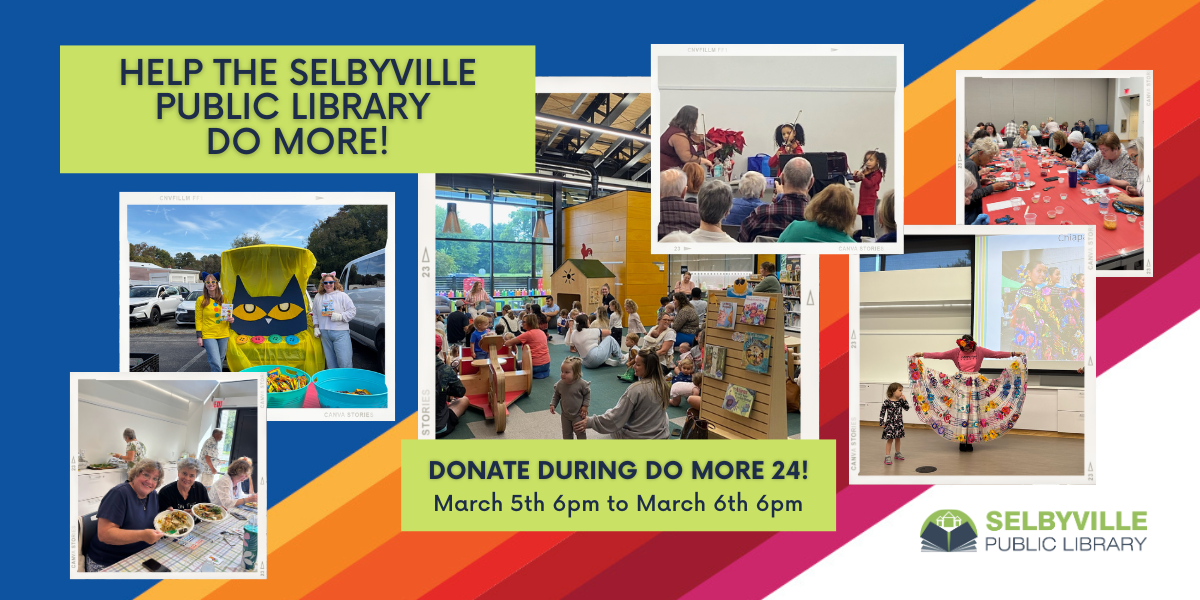 Since 2021, the SPL has fundraised over $80,000 by participating in Do More 24! Thanks to YOUR donations, matching funds, and prizes, the Selbyville Public Library has been able to sustain a growing community and facility.